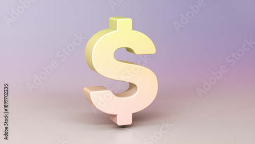 Soft pastel 3D dollar sign standing on a smooth gradient background in gentle pink, purple, and yellow tones.