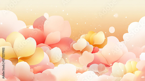 Soft pastel floral background with abstract flowers in shades of pink and yellow, creating a serene atmosphere