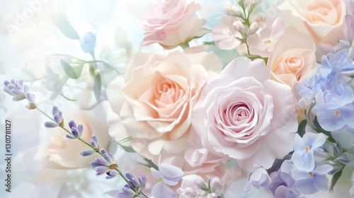 Soft Pastel Roses and Lavender, Romantic Floral Background