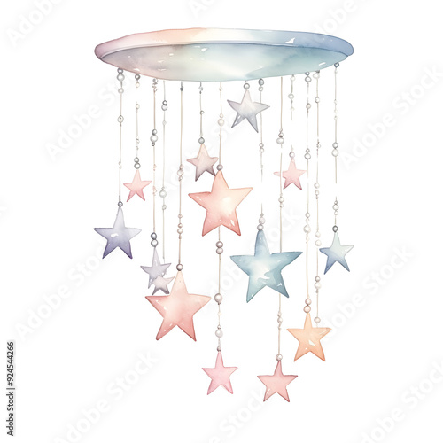 Soft Pastel Watercolor Stars Mobile with Soothing Tones Isolated on White Background