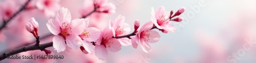 Soft pink cherry blossom branch, delicate brushstrokes, spring serenity , acrylic, minimal, springtime