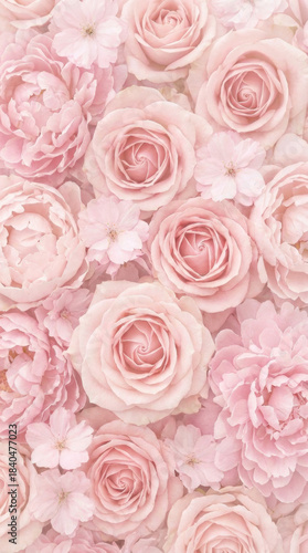 Soft pink rose peony blossom arrangement, rose peony blossom, pastel floral texture, delicate petals, romantic bouquet, spring bloom