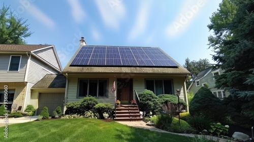 Solar panels on a suburban house, symbolizing environmental consciousness.