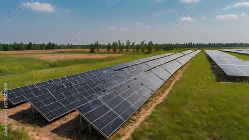 Solar panels photovoltaic cells renewable energy green energy power plant sustainability farm field