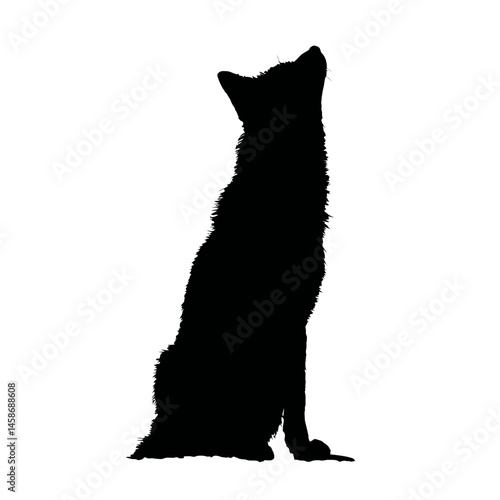 Solid black silhouette of a kitsune sly, Vector Graphic