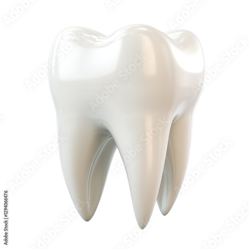 Solid white tooth model isolated on transparent background, PNG