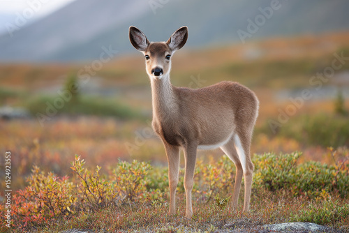 solitary, cervid, standing, tundra, plain, canada, during, gold, hours, light, scene, soft, glow, illuminating, velvet, fur, surrounded, repeating, texture, landscape, atmosphere, serene, peaceful, beauty, nature, minimalist, style, clean, background, inspiration, unique, creative, empty space, design, simplicity, visual, minimal