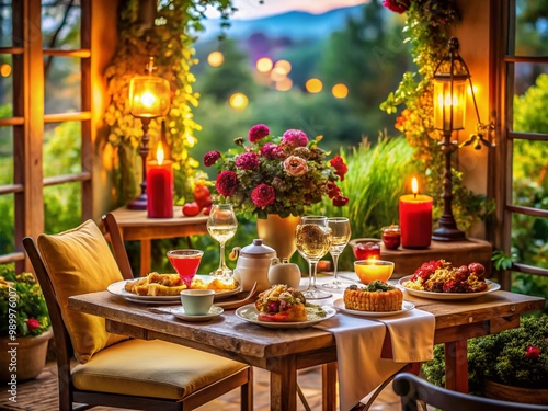 Solitary Dining Experience: A Table Set for One with Delicious Food and Cozy Ambiance Around