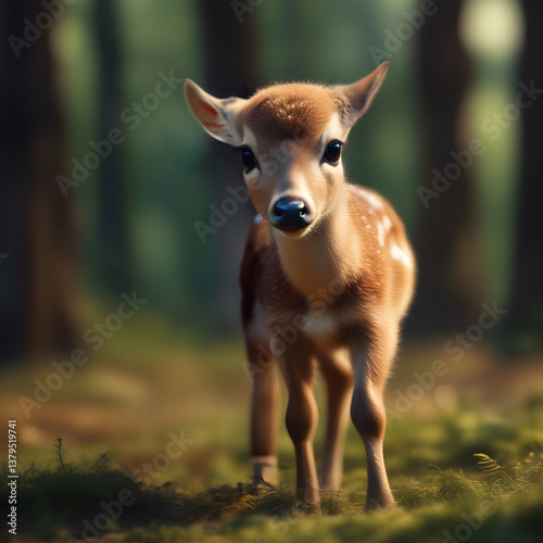 Solitary Fawn STanding Still in the Forest