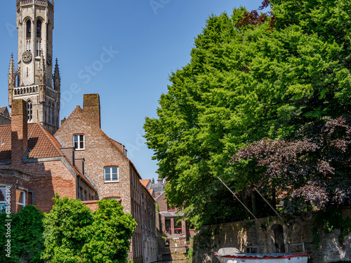 bruges, belgium, historic, church, tower, water, river, boat, flower, wall, window, street, market, city hall, veneer, gable, bridge