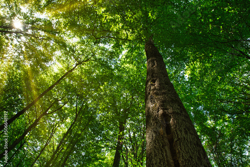 Sonnenstrahlen durch das Blätterdach einer Buche