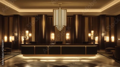 Sophisticated Art Deco Hotel Reception with Elegant Lighting and Chic Decor