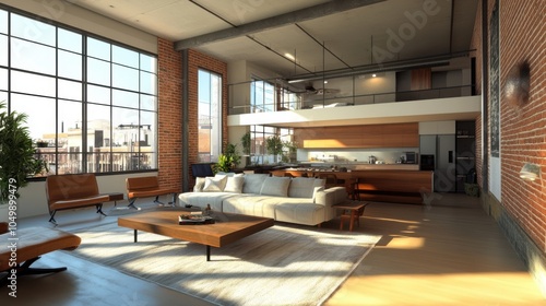 Sophisticated urban loft with an open floor plan, stylish decor, and a private rooftop