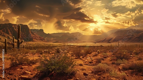 Southwestern Serenity, Arizona Desert Landscape Background, Evoking a Sense of Peace and Tranquility in the Heart of the Desert