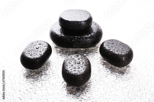 Spa stones with drops on light background