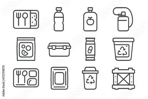 Space bag icon bin hydration tray crate container food vector supply icons