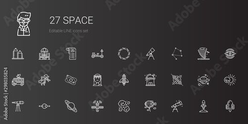 space, icon, set, vector, telescope, zeppelin, satellite, saturn, solar, system, planet, observatory, startup, muse, dish, asteroid, spaceship, eclipse, nebula, tornado, moon, rover, shopping, list, chair, and, table, scientist, signs, illustration, design, symbol, isolated, science, concept, graphic, technology, astronomy, star