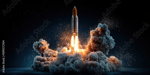 Space rocket launching with flames and smoke space center photography nighttime aerial perspective technology