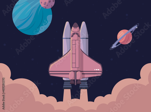 space, outer, universe, galaxy, planet, saturn, fantasy, futuristic, planetary, astronomy, cosmic, colourful, scene, exploring, moon, future, modern, science, vector, illustration, design