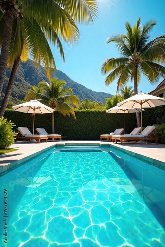 Sparkling Turquoise Pool Idyllic Summer Escape, Sun-Drenched Relaxation and Refreshing Swim