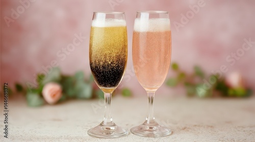 Sparkling Wine Glasses Celebration Drinks Pink Background Romantic Setting Festive Toa