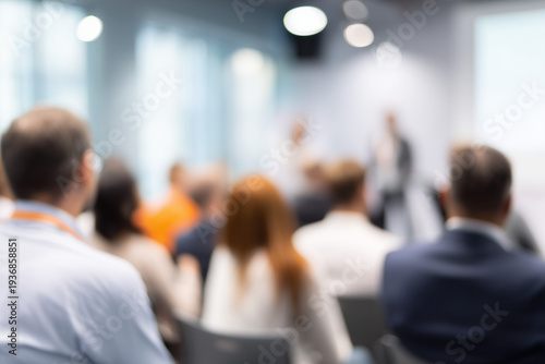 speaker blurred foreground, modern conference room, professional development and knowledge sharing concept growth