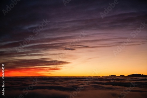 background, cloud, cloudy, coloured, colourful, colours, dramatic, horizon, immensity, landscape, light, mountain chain, mountain, nature, nobody, red, scenery, silhouette, sky, spectacular, sundown, sunset, trail, twilight, wallpaper