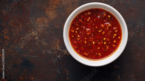 Spicy Red Chili Sauce in Bowl on Rustic Dark Background