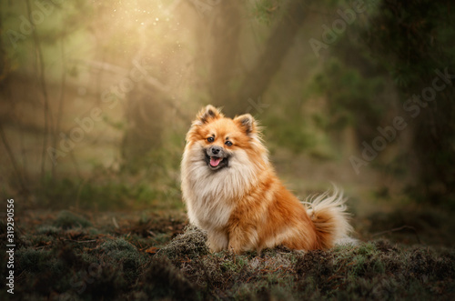 Spitz dog beautiful portrait in the autumn forest