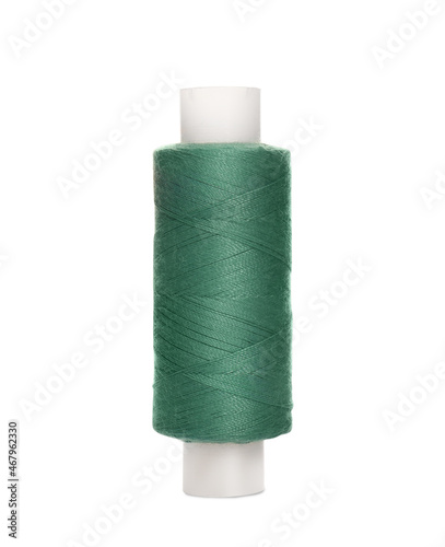 Spool of green sewing thread isolated on white