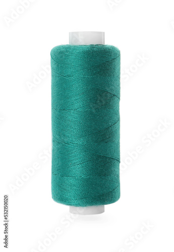 Spool of green sewing thread isolated on white