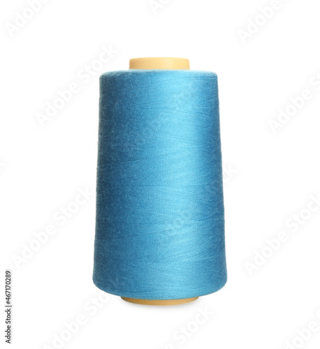 Spool of light blue sewing thread isolated on white