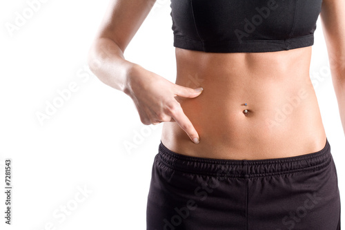 belly, athletic, woman, female, grease, isolated, release, white, finger, point, hip, slim, thin, piercing, fitness, diet, astronomic, meager