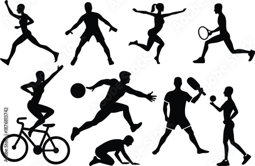 sport, silhouette, running, tennis, cycling, basketball, volleyball, soccer, fitness, athlete, exercise, sportsman, sportswoman, sports team