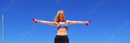 girl, sporty, woman, background, health, lifestyle, dumbbell, beautiful, fitness, young, people, female, person, summer, view, white, beauty, bottom, body, sky, sport, active, exercise, fit, athlete, healthy, blond, happy, attractive, 1, model, sun, energy, activity, training, weight, physical exercise, activewear, dumbbell, isolated, against, nature, blue, desert, red, hit, black, adult, caucasian, cute