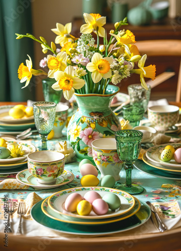 easter, flower, food, rabbit, table setting, arrangement, beautiful, blossom, bouquet, tree branch, breakfast, bright, rabbit, celebration, centrepiece, closeup, coloured, composition, craft, daffodil, decorated, decoration, design, dinner, drink, easter egg, egg, festive, glasses, happy, holiday, home, house, indoor, interior, march, nature, ornate, painted, party, plate, spring, springtime, still life, symbol, table, tradition, twig, vase