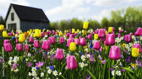 spring, meadow, tulip, daffodil, daisy, flower, colourful, vibrant, blooming, blossom, rural, countryside, landscape, scenic, nature, botany, flora, garden, field, farm, agriculture, plant, flower petals, springtime, beauty, bright, cheerful, pretty, background, image