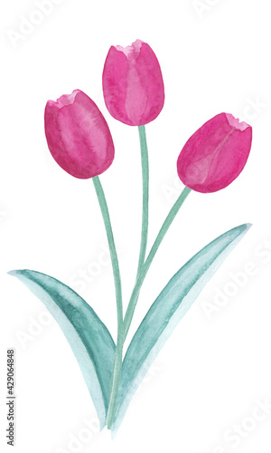 Spring tulips bouquet, abstract watercolor free-hand illustration for postcard, invitation, banner