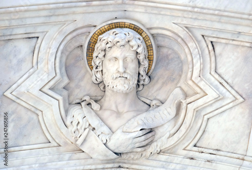 St. John the Baptist relief on the facade of Basilica of Santa Croce (Basilica of the Holy Cross) - famous Franciscan church in Florence, Italy
