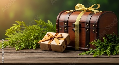 treasure chest, gift box, celebration, holiday, festival, shamrock, rainbow, tradition, symbolism, good luck, festive, cheerful, colourful, whimsical, magical, mythical, celtic, ireland, irish, spring, hope, renewal, joy, happiness, treasure, gift, present, ribbon, bow, wood, nature, outdoors, home, tabletop