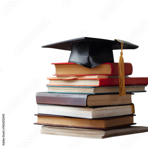 Stack of Books with Graduation Cap Symbolic Education Concept