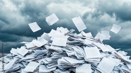 chaos, paperwork, document, cloud, storm, anxiety, overwhelm, disorder, office, work, stress, file, shortage, challenge, management, environment, business, clutter, sky, sheet, negative, pressure, workload, intensity, frustration, flying, white, surface, pile, stack, disarray, heavy, burden, stormy, cloudy, scene, texture, situation, nature, wind, cluttered, massa, heap, aerial, concept