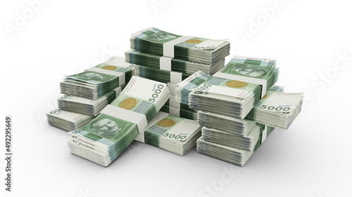 stack of Kyrgyzstani som notes. 3D rendering of bundles of banknotes