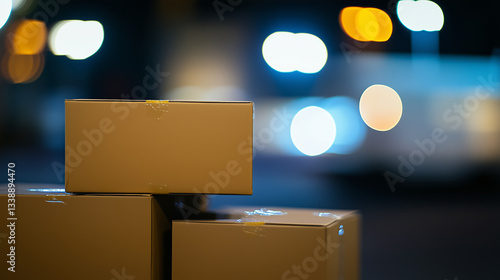 Stacked Boxes in Warehouse, Symbolizing Efficient Logistics and Organized Storage