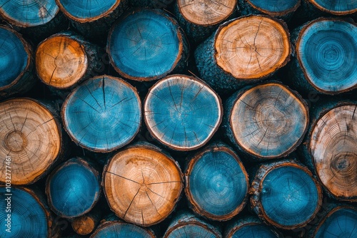 Stacked Cross Sections of Tree Trunks with Blue and Brown Coloration