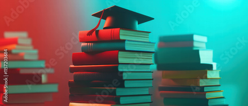 graduation, textbook, education, cap, achievement, study, cognition, student, book, learning, vibrant, colours, celebration, ceremony, academic, success, scholarly, reading, light, background, stack, higher education, diploma, wisdom, bright, illustration, sharpened, university, graduation day, preparation, essential, symbol, motivation, aspiration, growth, literature, intellect, school, library, browse, future, journey, career, talent, inspiration, dedication, passion, creativity