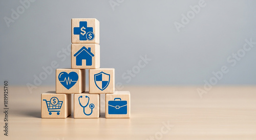 block, wooden, icon, insurance, table, background, studio, shot, stack, health, home, life, finance, protection, business, medicals, care, risk, safety, property, investment, planning, policy, money, security, concept, symbol, support, service, estate, family, future, be of use, shield, nubes, stethoscope, briefcase, cart, dollar, plus, grey, beige, cube, blue, arrangement, stacked, block, with, various