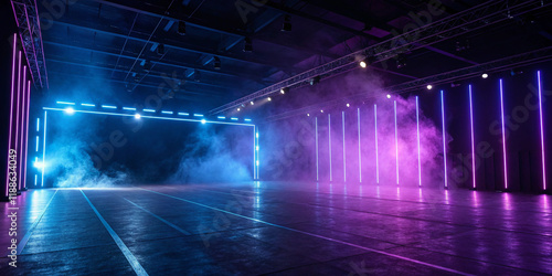 Stage with Blue and Purple Lighting: A Dramatic Performance Space