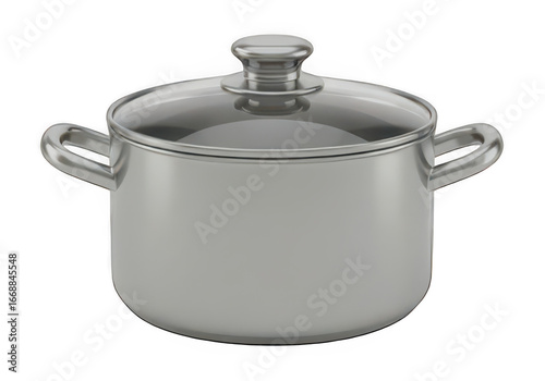 Stainless steel cooking pot with glass lid isolated on transparent background