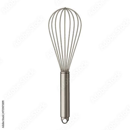 Stainless steel whisk for culinary mixing.